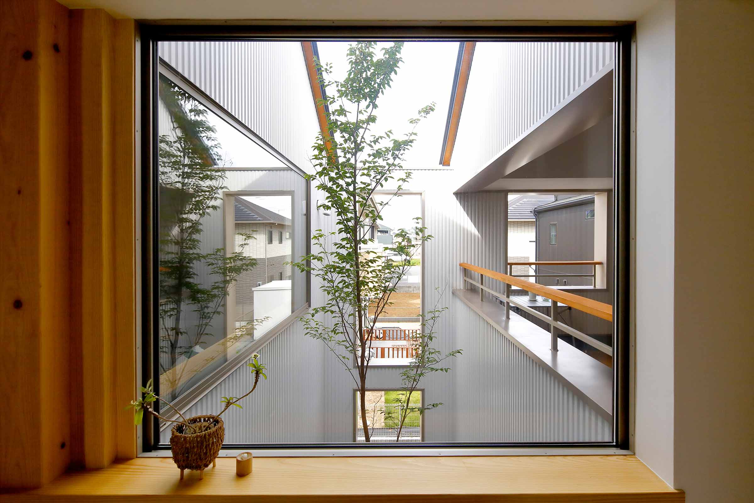 採光やプライバシー確保の観点から2階リビングと小さな中庭を採用しました。