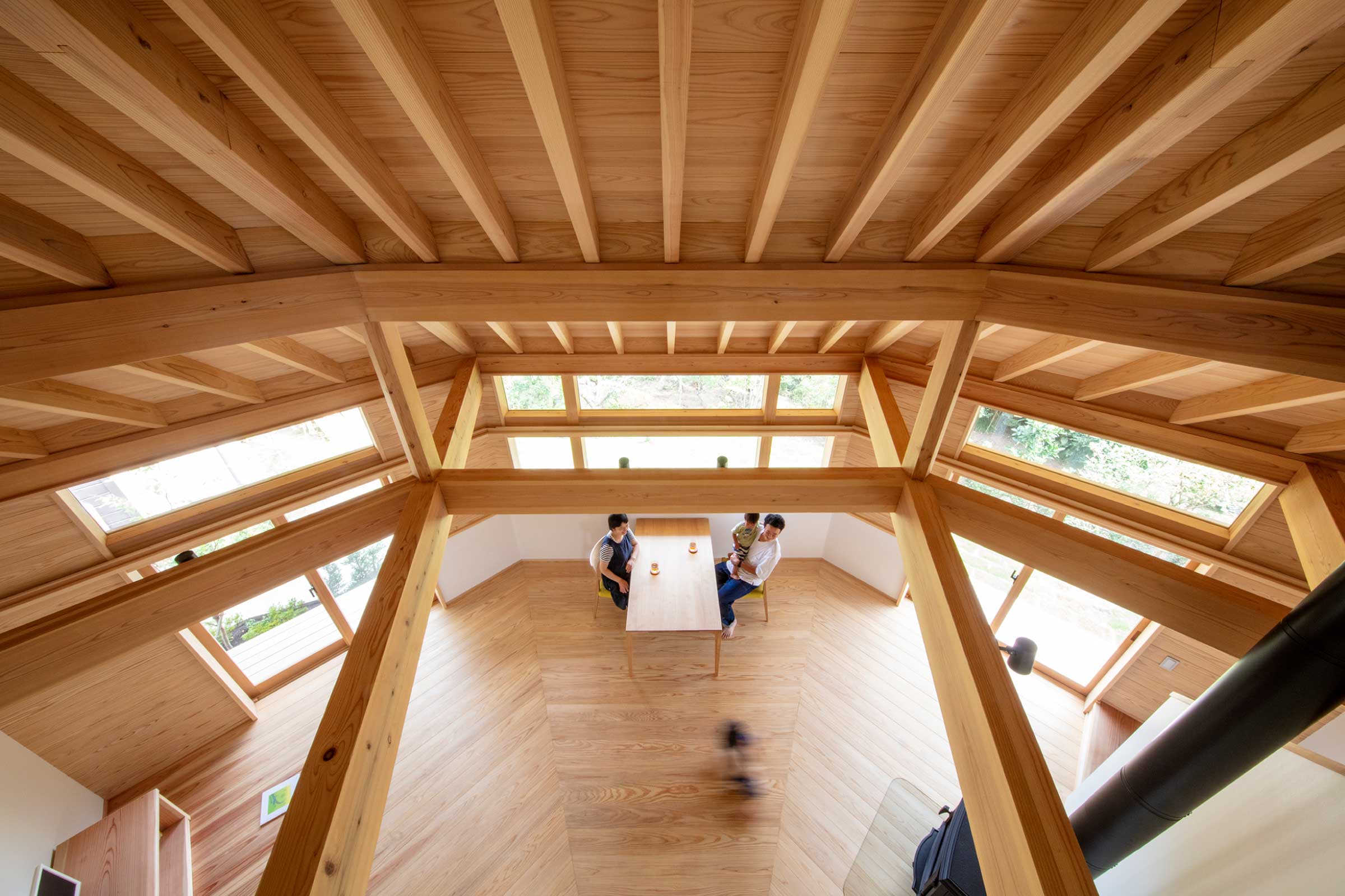 開放感に相応するロングスパンは、大断面の地場の無垢材が支えます。