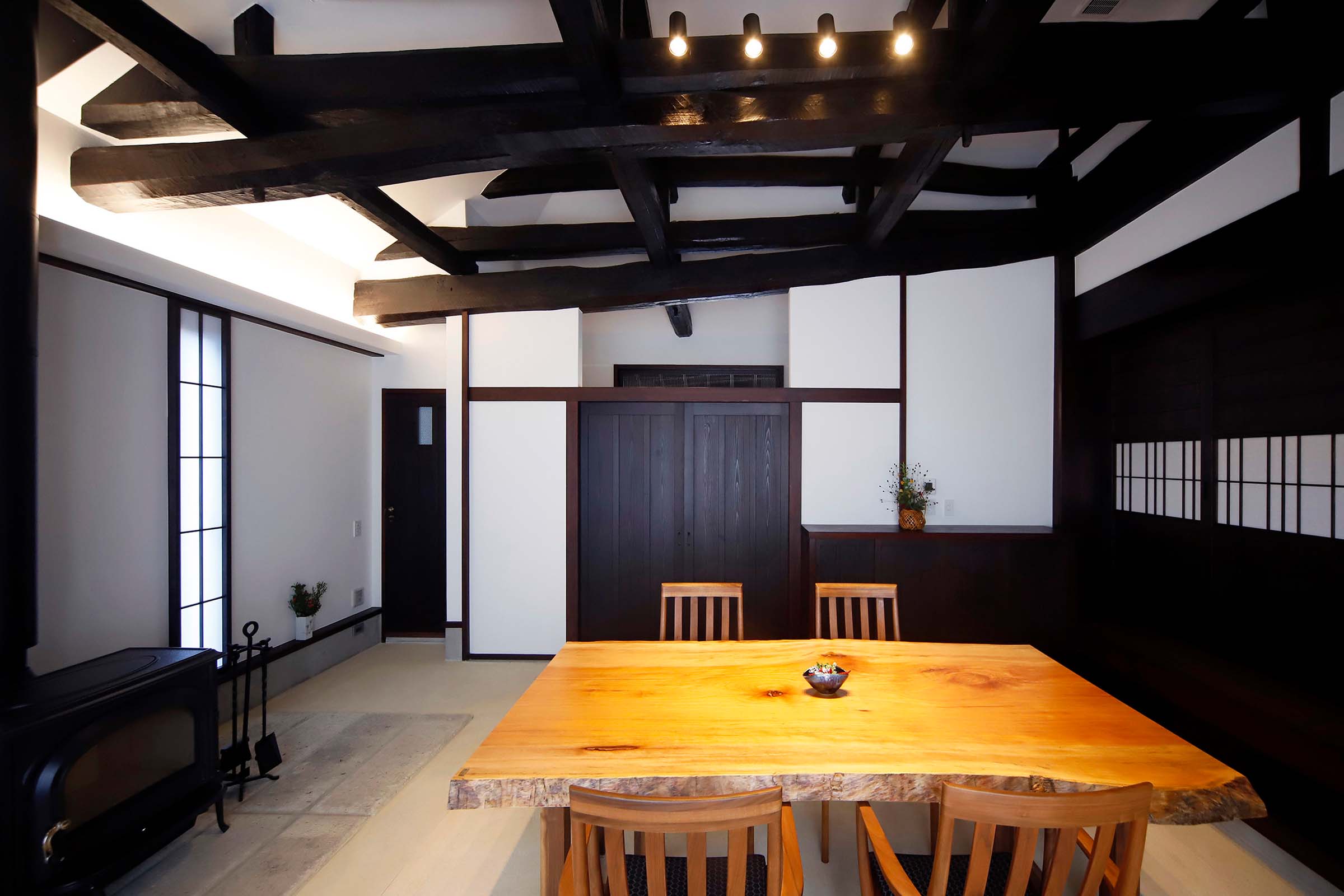 新設した薪ストーブや床暖房によって、蓄熱効果のある土間になりました。