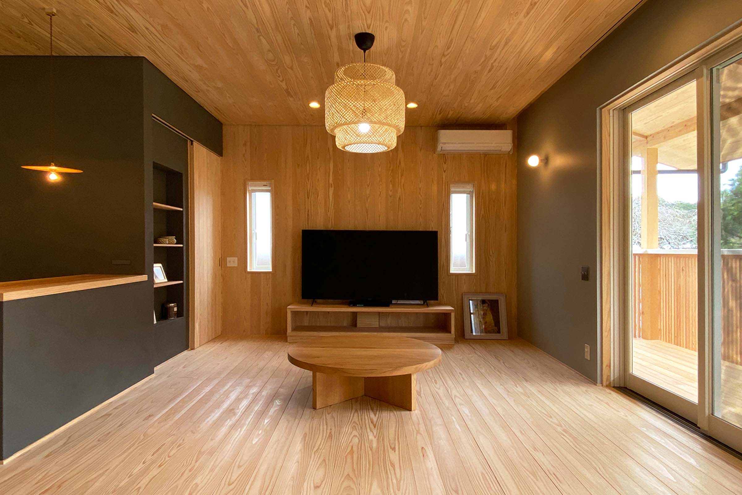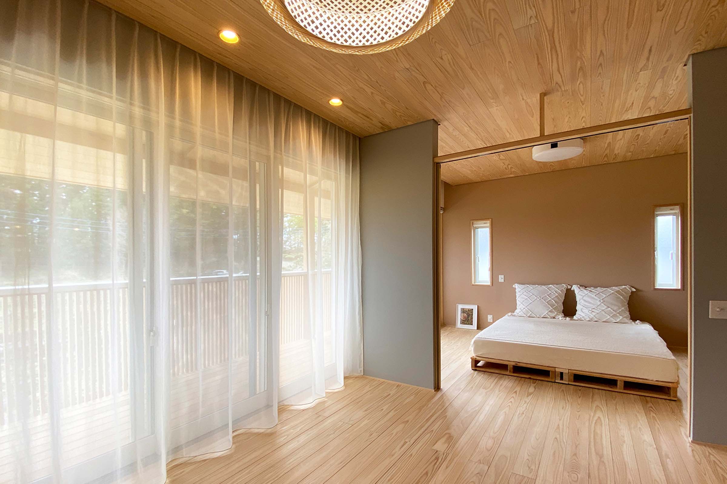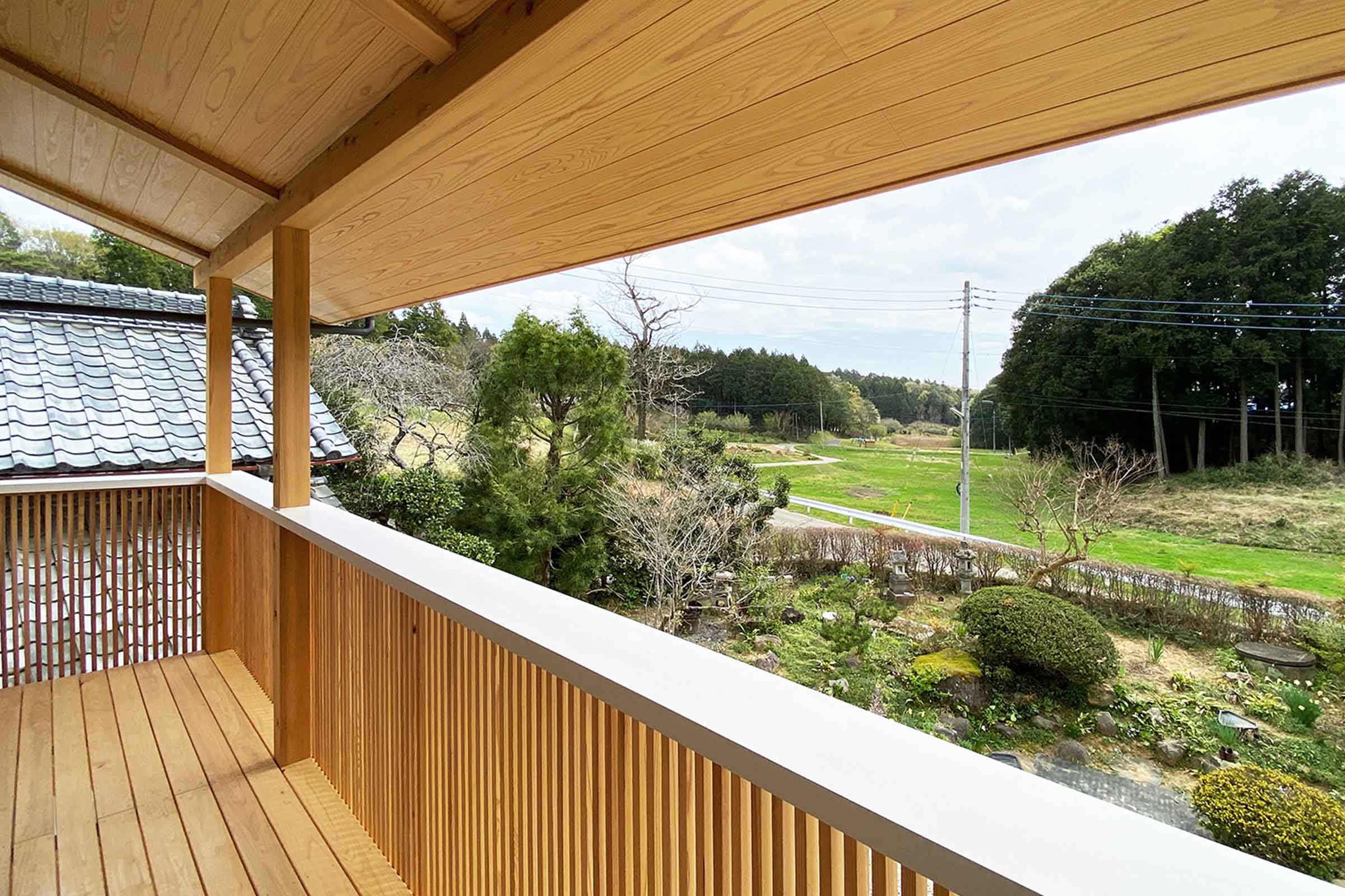 また、2階のベランダは屋内同様の無垢材で床・壁・天井を仕上げ、